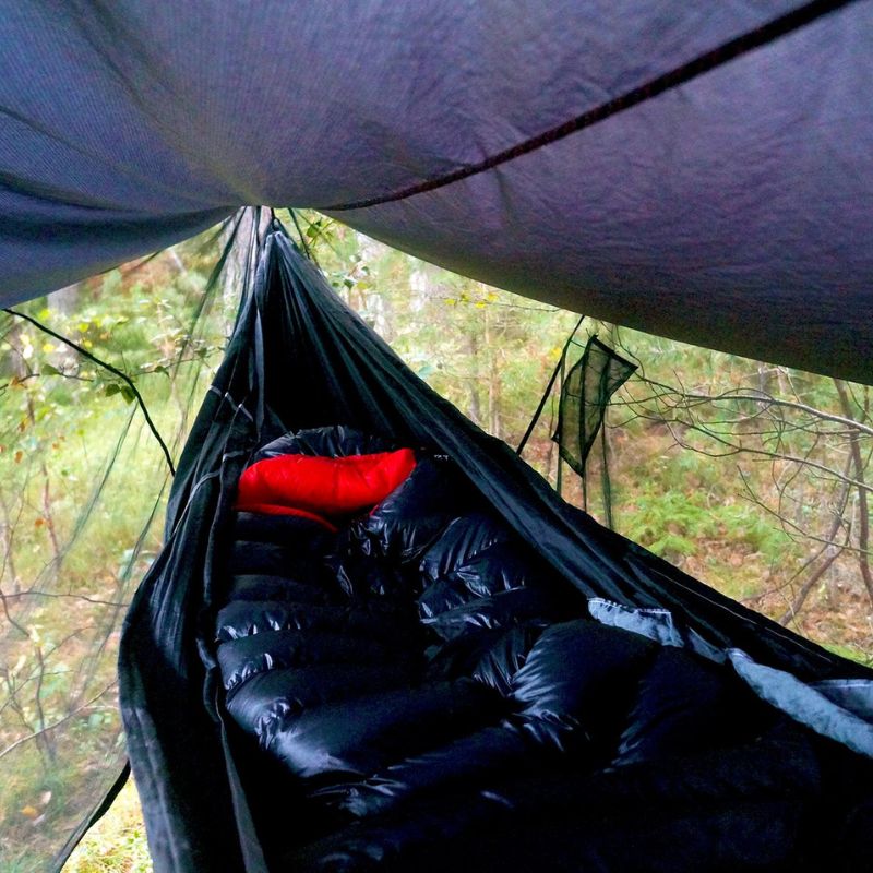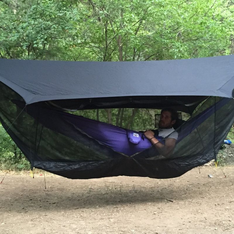 Hammock Bliss Sky Tent 2 (ST2) is a revolution in the making, bringing hammock camping to a new level of comfort and convenience. Stay dry from the rain, safe from the bugs with ample space for you and your gear. ST2 acts as a tent for your hammock off the ground and can accommodate up to 2 hammocks one above the other. The oversized rip stop rain fly provides complete protection from the rain for both your hammock and your gear.
