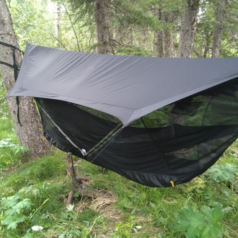 If you want to use your Sky Tent as a conventional ground tent, you can easily stake out the 4 exterior corners of the floor and use a hiking pole to hold up one or both ends of the rain fly. There is plenty of space in the waterproof stuff sack to fit your Sky Tent, straps and any sized hammock. Join the Sky Tent revolution - hammock camping will never be the same.
