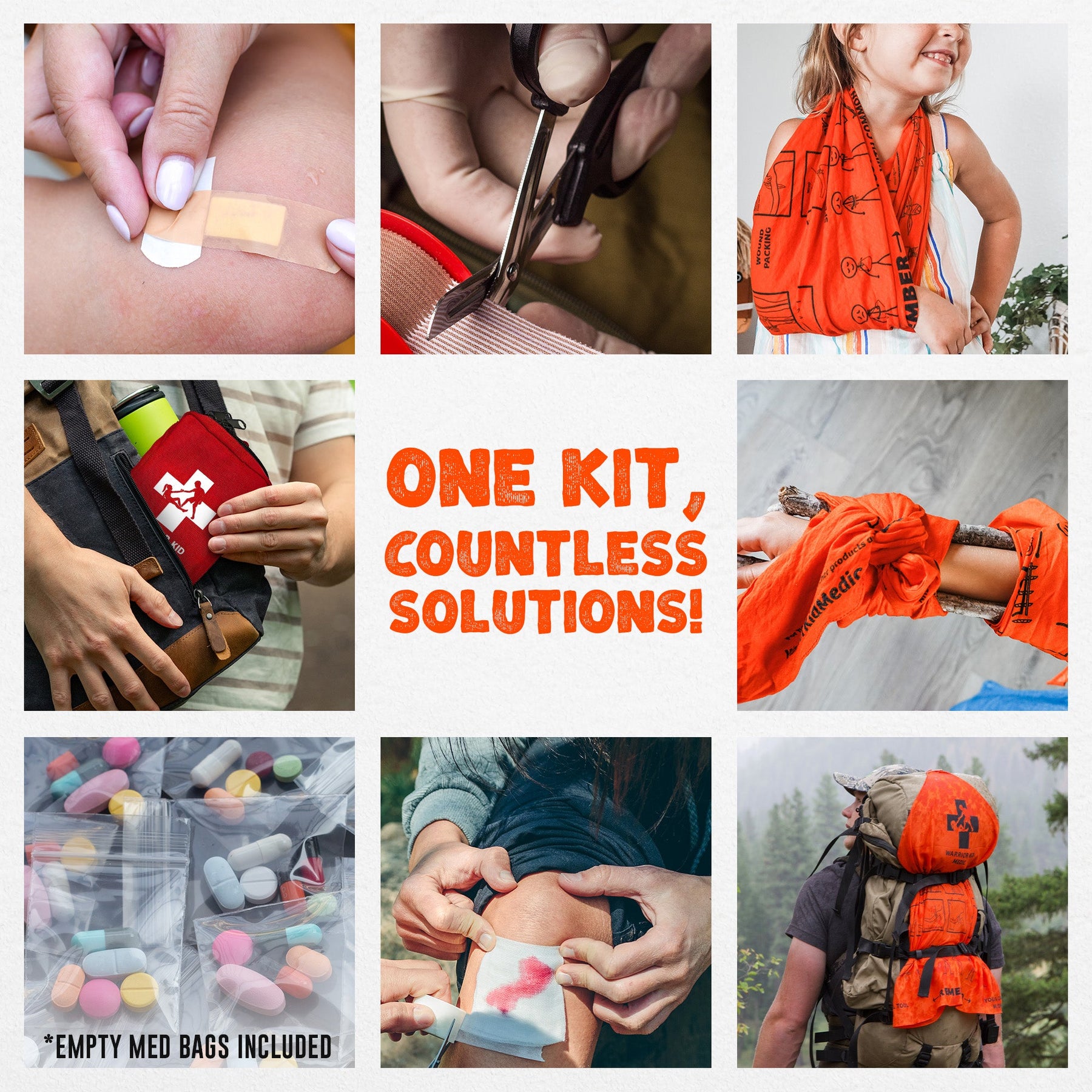This kit has everything you need and nothing you don't.  Designed to be as compact as possible, while still having real capability:  Tourniquets, slings, splints, shock treatment, etc.  It's unlike most "kid kits" that just have some band-aids and cute stickers.  This is a Warrior Kid Kit!  It is what my own children carry.  It's also what I carry in by every day bag - I just add some meds, chest seal, and nasal airway.